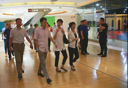 在開展調研工作過程中,鑫江集團的趙文博先生、方潤超女士和邱晶女士陪同各位領導參觀了繽紛東方真冰場、鑫江國際搏擊俱樂部、阿瑞斯健身、南冰輪滑等購物中心內發(fā)展群眾體育工作的商戶。