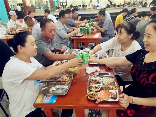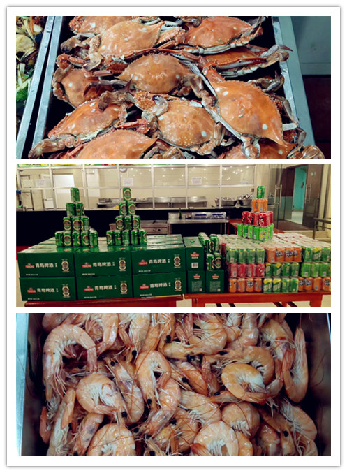 公司領(lǐng)導(dǎo)特意安排包括螃蟹、大蝦、餃子、各種飲料等在內(nèi)的豐盛的午餐晚餐,增強(qiáng)了大家對(duì)企業(yè)的認(rèn)同感、歸屬感。