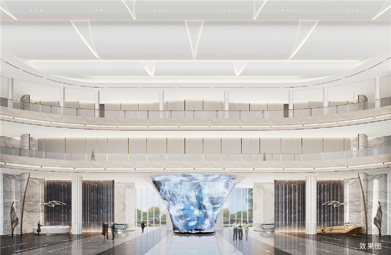 約2500㎡青島在建最大最高共享大堂,約18.8m高挑空,約58.8m無柱大跨度