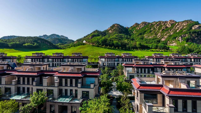 站在窗前,一幅潑墨山水畫清晰地映入眼簾。真正的推窗見山視角,眼前的青山如黛,云霧繚繞,附近更有太和山云頭崮、丹山、十梅庵等自然山景環(huán)抱。